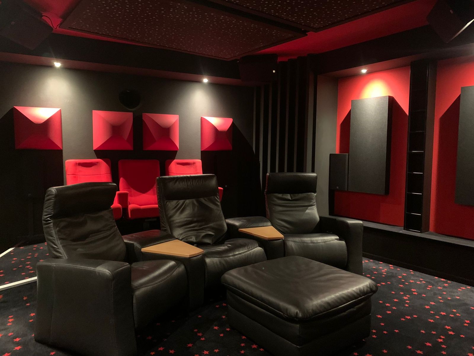 Sitze: 1. Reihe: 3er Ledersessel Trapez – 2. Reihe: 2 Kinositze