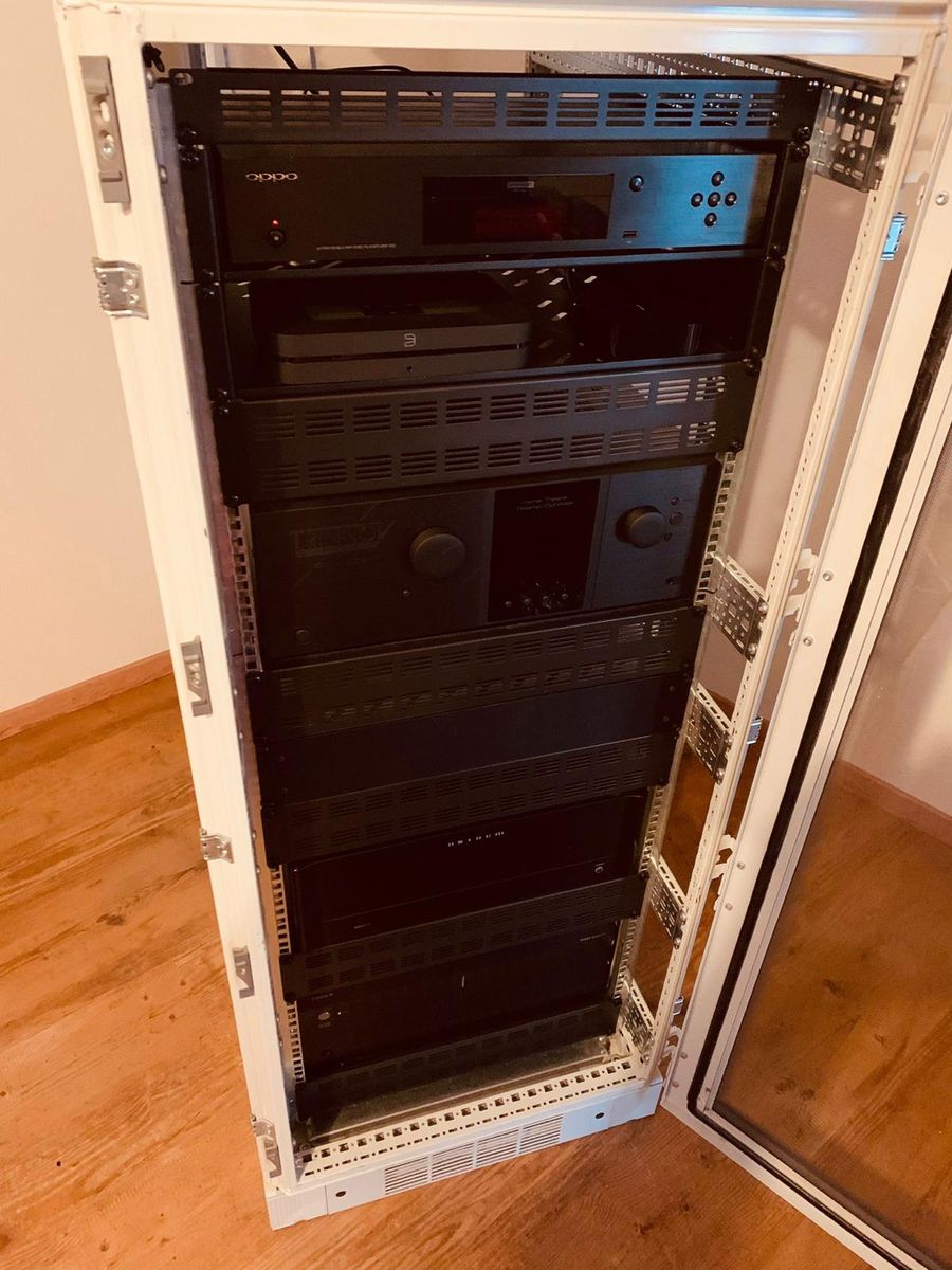 Endstufe: Anthem MCA 525 (Front + Front Wide) / Integra DTA 70.1 (Surrounds und Atmos) / Beckersounds Endstufe a250-6 Kanal (für alle Subwoofer)